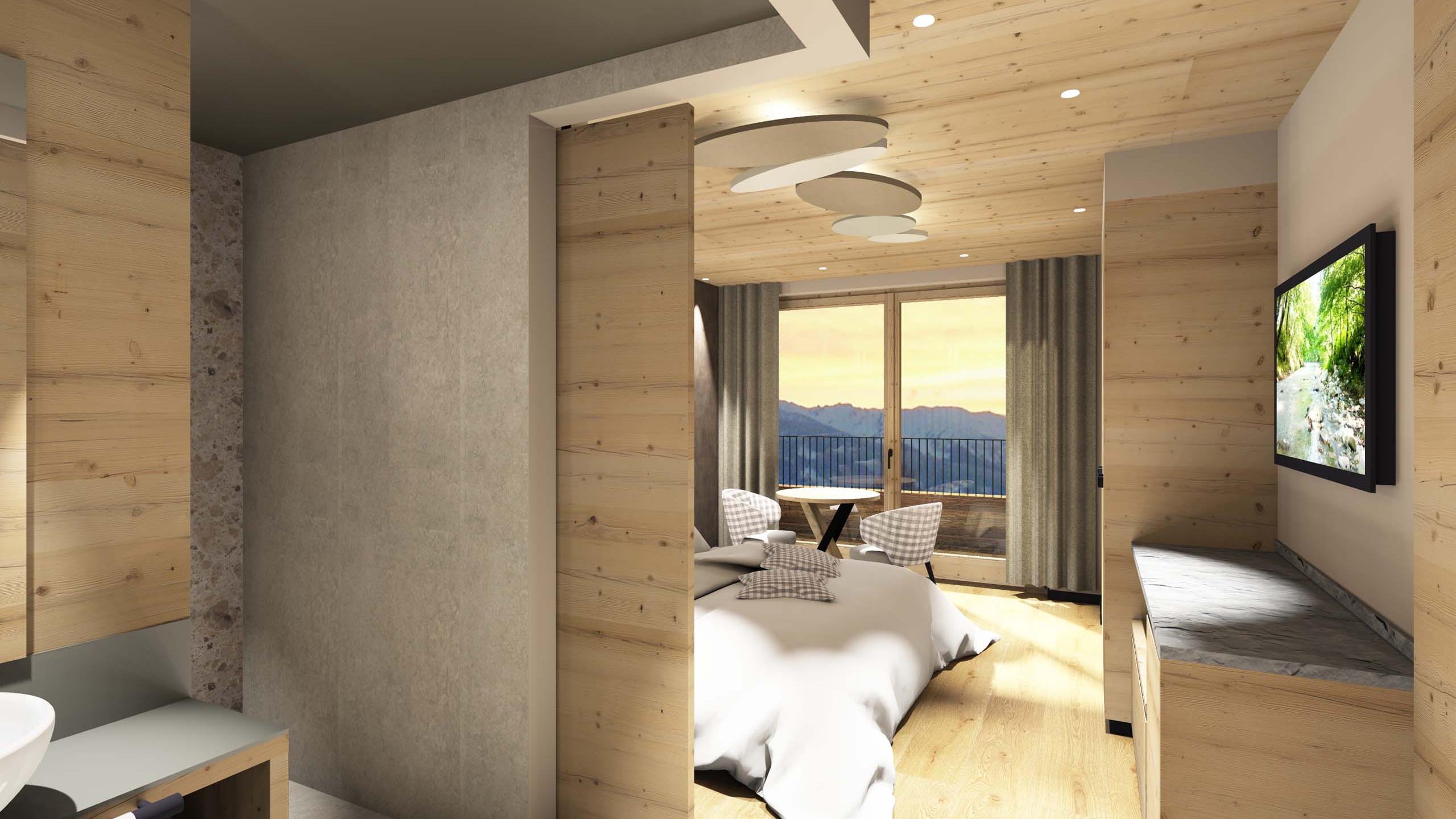 Intima e accogliente, la camera Comfort è un rifugio di tranquillità. Il design essenziale e raffinato, unito alla luce naturale che filtra dalla grande vetrata, crea un’atmosfera rilassante e armoniosa. L’angolo relax invita a concedersi una pausa sorseggiando un infuso, mentre il letto king size garantisce un riposo profondo.