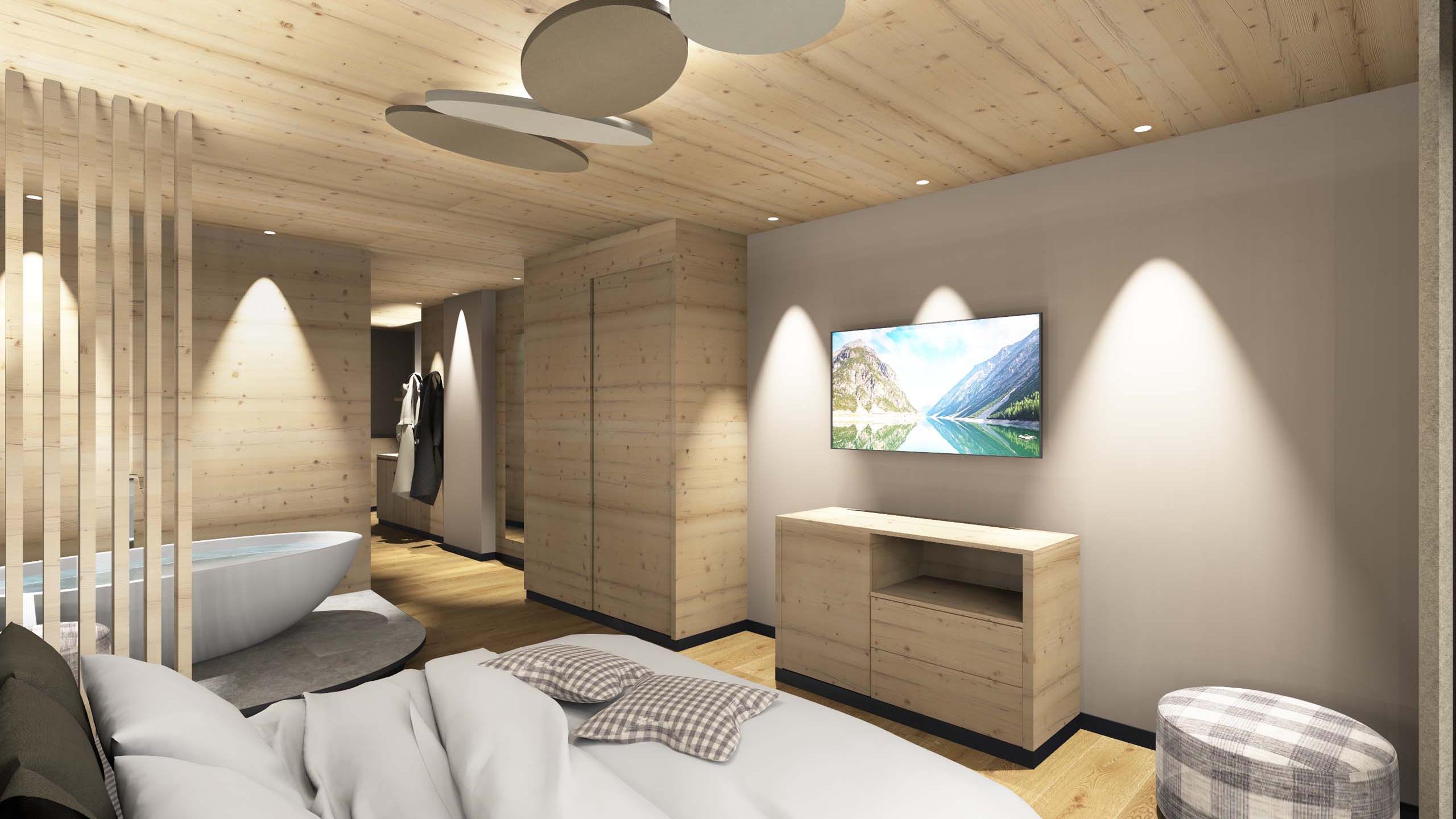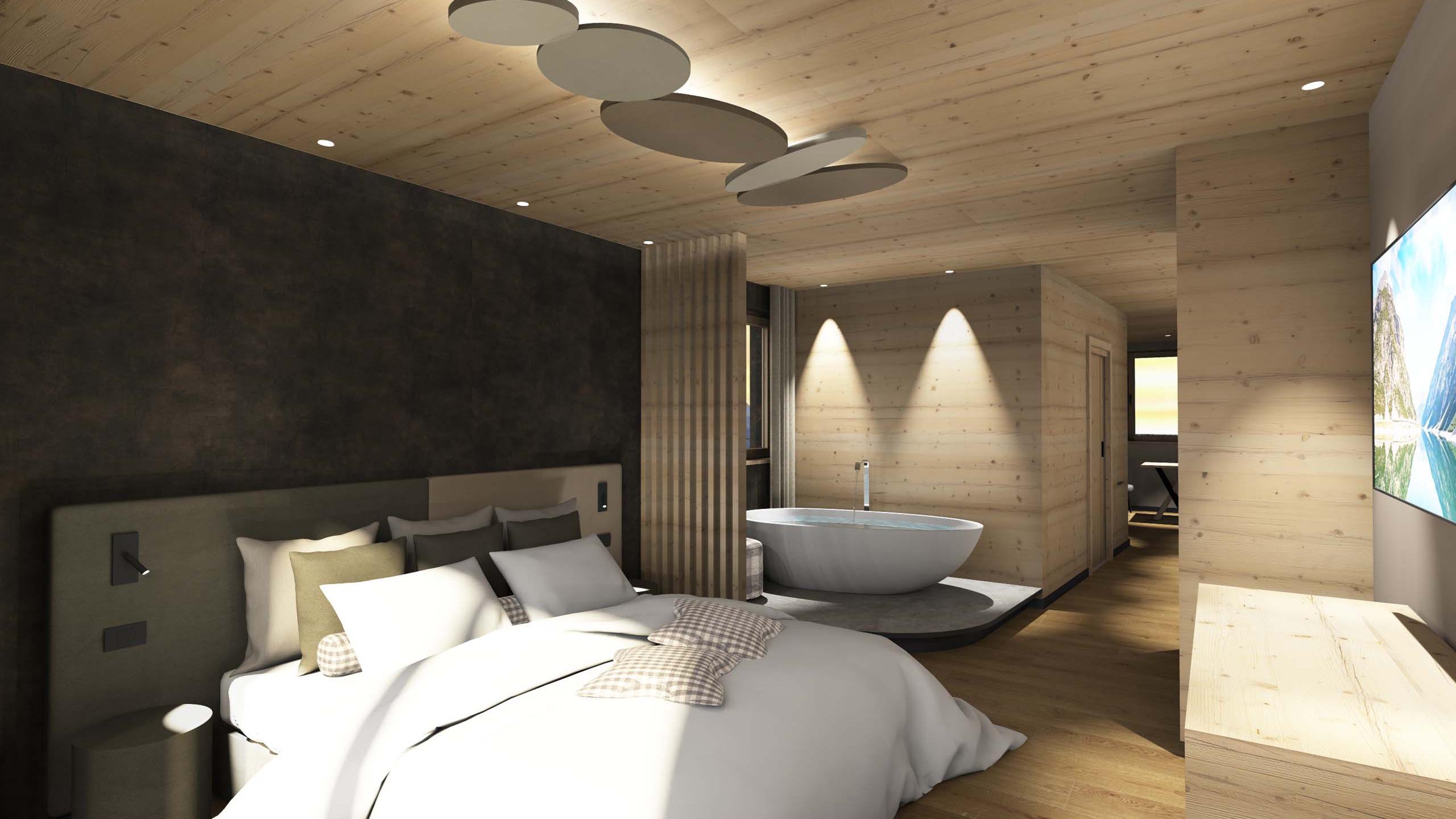 Un’esperienza esclusiva tra natura e benessere. La Mountain Suite offre ampi spazi e un salottino separato per un soggiorno all’insegna del relax. Il vero protagonista? La vasca idromassaggio a vista, perfetta per concedersi un momento di puro piacere ammirando il panorama. L’atmosfera calda del legno, unita ai comfort moderni, rende questa suite la scelta ideale per chi cerca qualcosa di speciale.